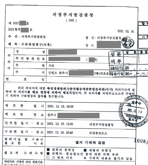 - 심문 결과, 구속 요건이 충족된다고 판단되면 구속영장을 발부합니다.