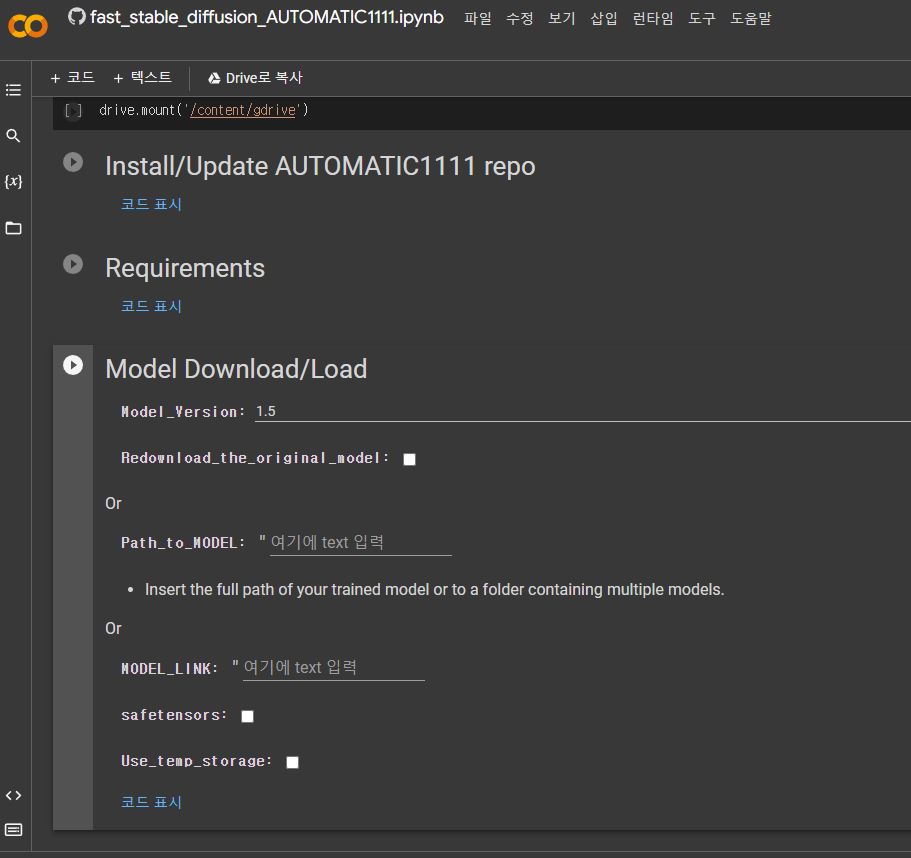 온라인 무료 서비스인 구글 코랩 서비스 위에서 사용할 수 있도록 만들어진 프로그램을 사용하면 간단하게 웹상에서 Stable Diffusion을 사용할 수 있다.
