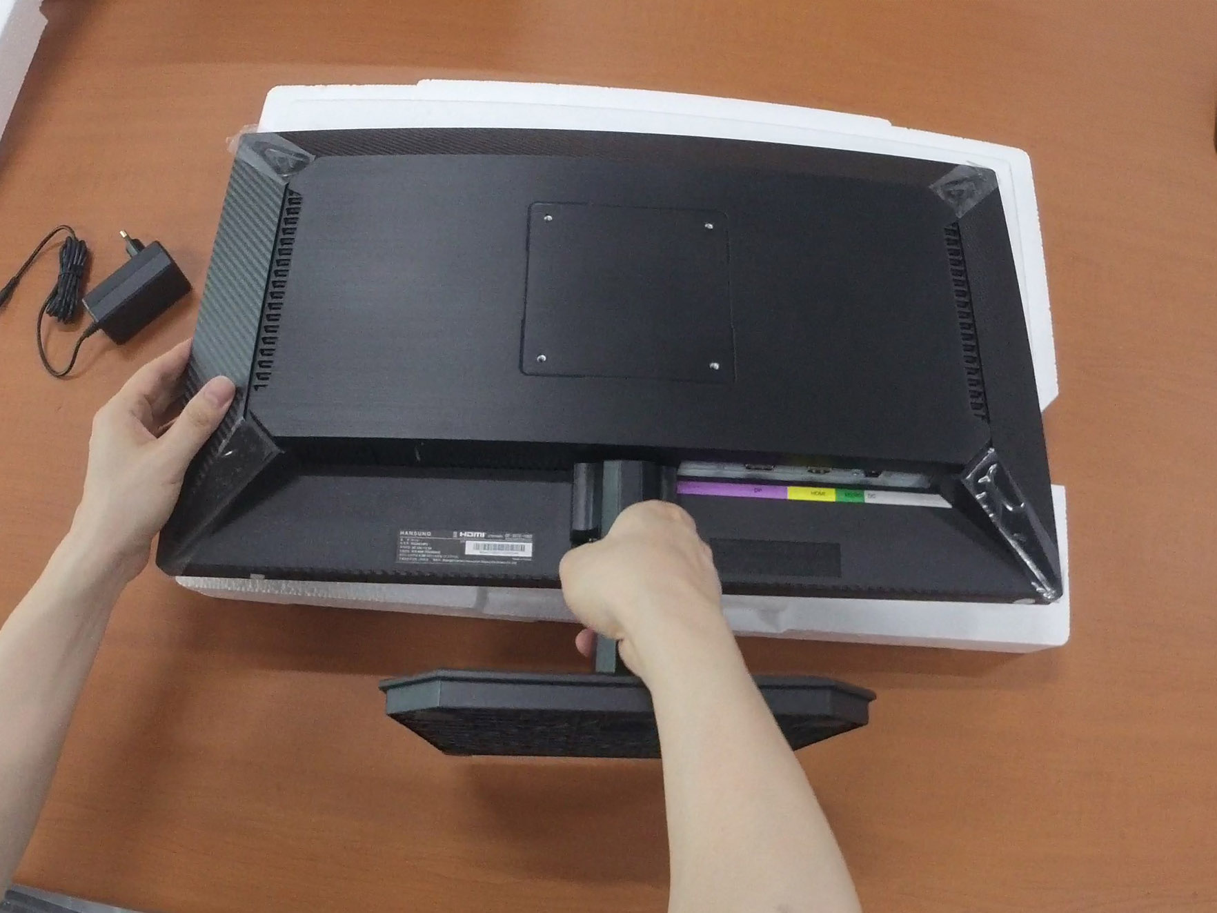 조립은 정말 간단했어요. 스탠드를 모니터 본체에 끼우면 끝! 컴퓨터 초보자분들도 쉽게 설치할 수 있을 것 같아요.