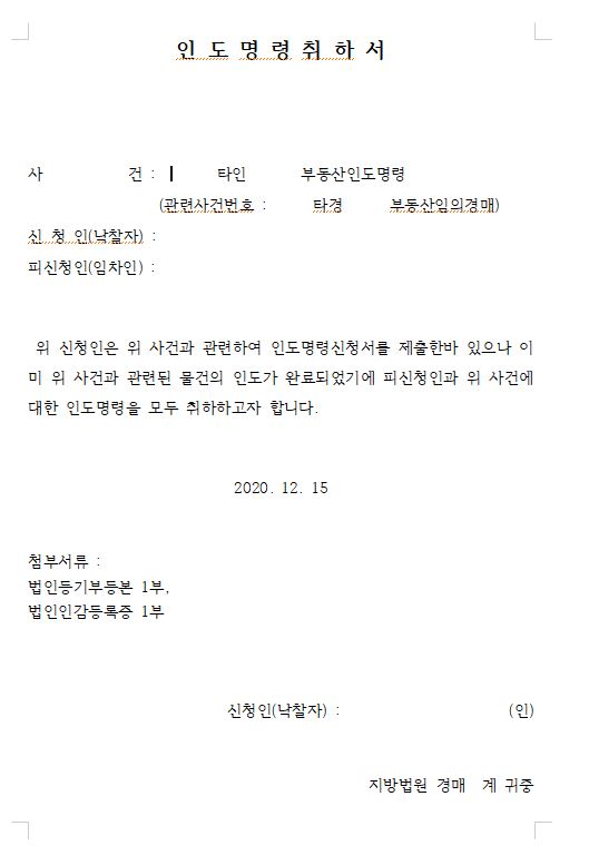 ### 인도명령 청구의 취하 방법