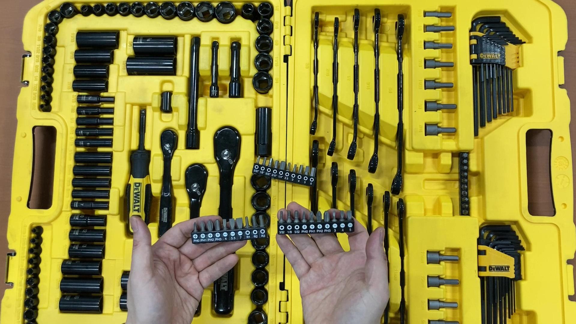 디월트 184PCS 세트의 가장 큰 매력은 그 구성의 다양성에 있습니다. 이 세트는 사실상 가정에서 필요한 모든 종류의 공구를 한 번에 담고 있습니다.